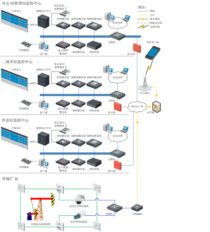 2)安防融合少——能源行业的工业电视系统与其他安全警卫系统大多独立运行,并未建立良好的联动机制,整个安防系统显得庞大而分散;